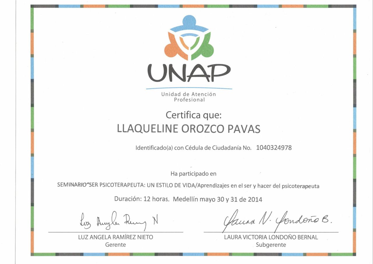 Estuve en consulta con Llaque por problemas de ansiedad a causa de diferentes factores en mi familia y fue excelente la ayuda que me dió, es demasiado profesional, genera muchísima confianza para contarle todo y desahogarse, es una persona con mucha ética y definitivamente la mejor en lo que hace, después de su tratamiento mi vida no fue la misma, gracias a Dios y a ella.
